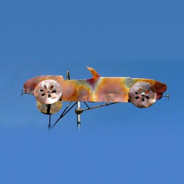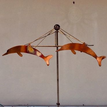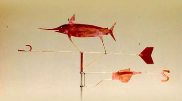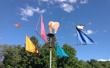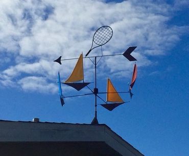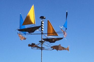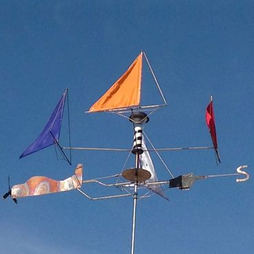 Handmade mobile sculptures show the wind direction - and your personality - on your roof, dock, or yard.