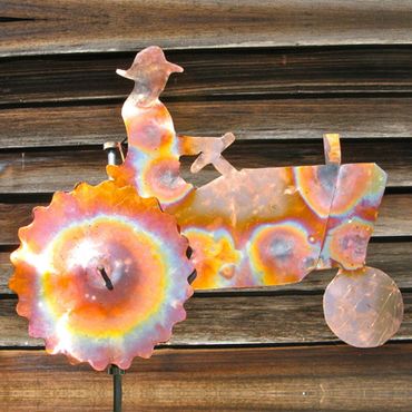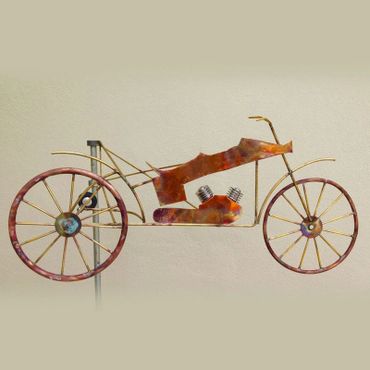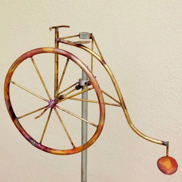 Paul is a master welder with an irreverent sense of humor. These attributes led him to design his whimsical creations from ordinary items and tools rescued from the "recycle bin." His appreciation of all things metal, especially copper and brass, enables him to use these metals as his "medium". An avid sailor and aviation enthusiast, Paul is also captivated by the power of the wind.