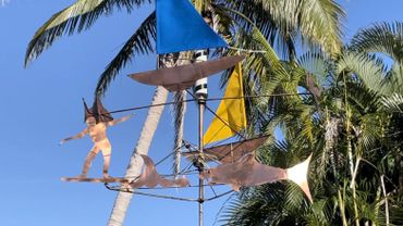 The City of Boynton Beach purchased these four kinetic wind vanes and installed them at the Boynton Bech Arts and Cultural Center and Children's Park